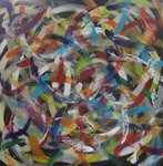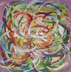 2008Vanuit het thema 'openhartig' is dit schilderij ontstaan. De bonte werveling pakt je gelijk en blijft boeien.