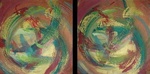 2010Dit 2-luik dankt zijn naam aan het feit dat welke zijde je ook kiest als zichtzijde dit een spannende combinatie geeft. Door steeds een kwart slag te draaien kun je 4 variaties krijgen in het synchroon beeld. Door de beide schilderijen a-synchroon te draaien kun je ongekend veel meer variaties maken. Door dit extra gegeven zijn deze 2 schilderijen extra spannend en geven door verandering van positie steeds weer een nieuw, levendig en verfrissend beeld in uw interieur. Wordt verkocht als set van 2.